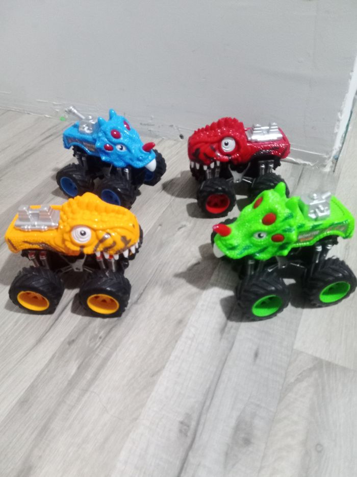 4 monster trucks dino