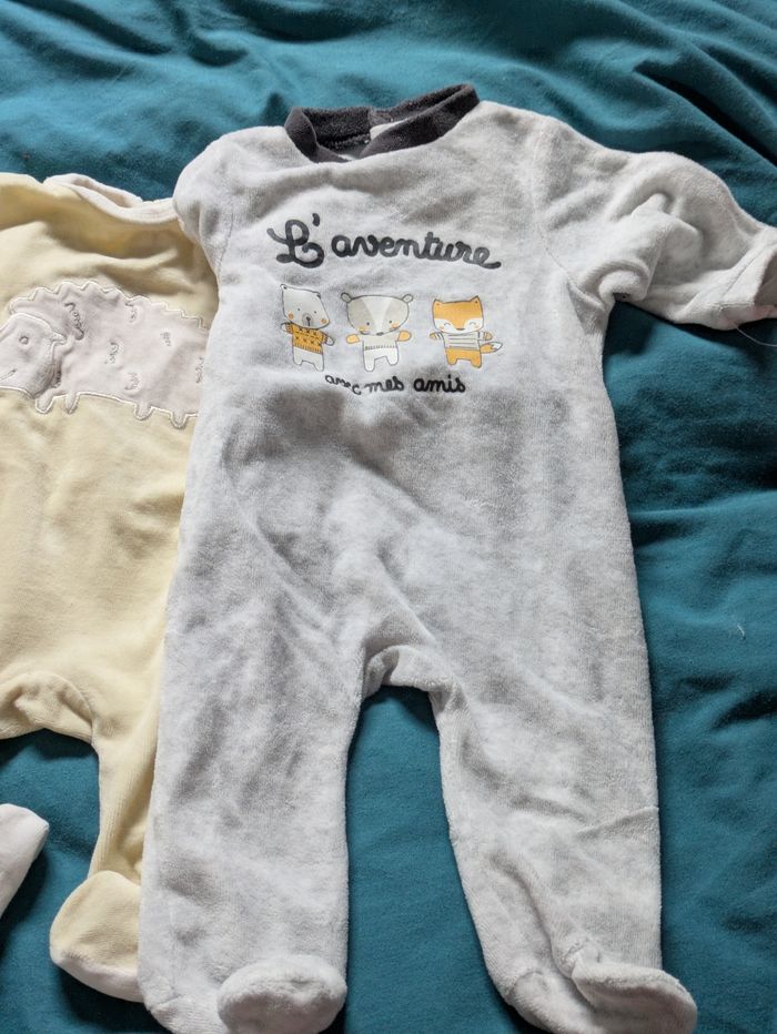 Lot de 3 pyjamas chauds pour l'hiver, marque Kiabi, kitchoun et mots d'enfant