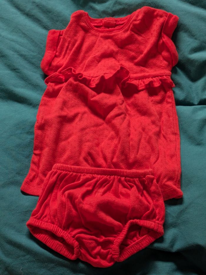 L'ensemble rouge a été lavé une fois mais jamais porté. Il est neuf.