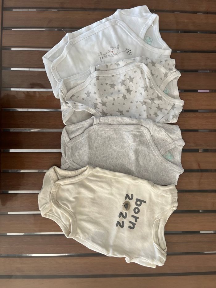 4 bodys Taille 1 mois En bon état tache sur le gris voir photo