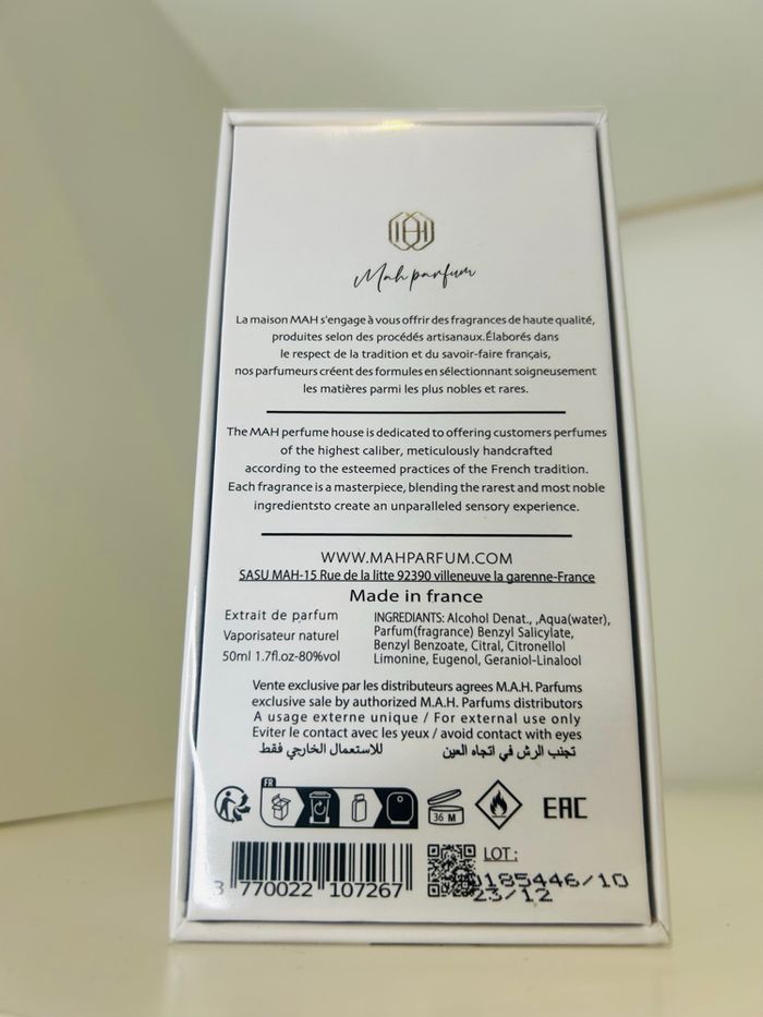 Extrait de Parfum – 50 ml Maison MAH Parfums 🇫🇷 Made in France Bois Intense, c’est le parfum qui ne demande pas la permission. Une fragrance profonde, racée, élégante, pensée pour celles et ceux qui aiment les sillages affirmés et la noblesse des matières premières. On est sur un extrait de parfum, donc concentration élevée, tenue longue durée, projection maîtrisée mais bien présente. Pas un parfum qui crie, mais un parfum qui impose le respect. 🌲 Univers olfactif Un accord boisé intense et enveloppant, travaillé avec finesse. • Ouverture : bois secs et élégants, sensation immédiate de profondeur • Cœur : notes boisées chaudes, légèrement ambrées, très structurées • Fond : boisé puissant, persistant, sophistiqué, avec une signature nette et durable 👉 Un parfum profond, chic, mature, parfait pour l’automne, l’hiver, les soirées, ou tout simplement pour ceux qui aiment sentir “bon” longtemps et sérieusement. 🧴 Détails du produit • Contenance : 50 ml • Concentration : Extrait de Parfum • Vaporisateur naturel • Packaging blanc élégant, finition prestige • Produit neuf, scellé d’origine • Vente exclusive par distributeurs agréés MAH Parfums #mauboussin #mauboussinparfums #elixirpourelle #parfumfemme #parfumluxe #parfumoriginal #parfumoriental #parfumgourmand #coffretparfum #coffretbeauté #coffretcadeau #ideecadeau #cadeaufemme #cadeauluxe #parfumneuf #authentique #parfumerie #beauteluxe #soinparfume #pochette #sacbandouliere #laitparfume #sprayvoyage #feminin #elegance #raffinement #offrir #plaisir #parfumaddict #collection