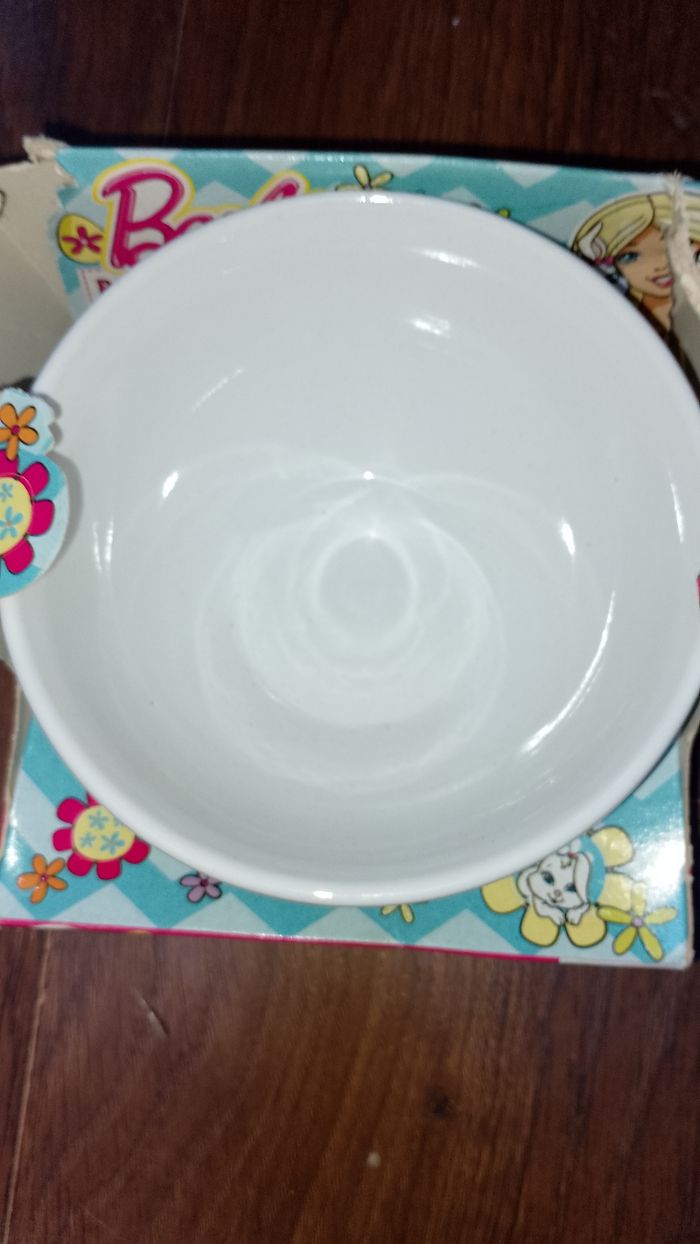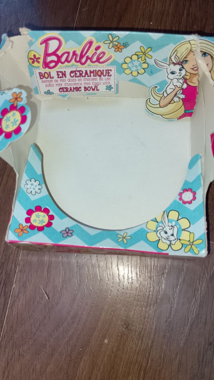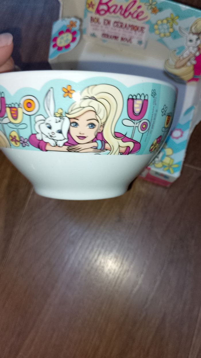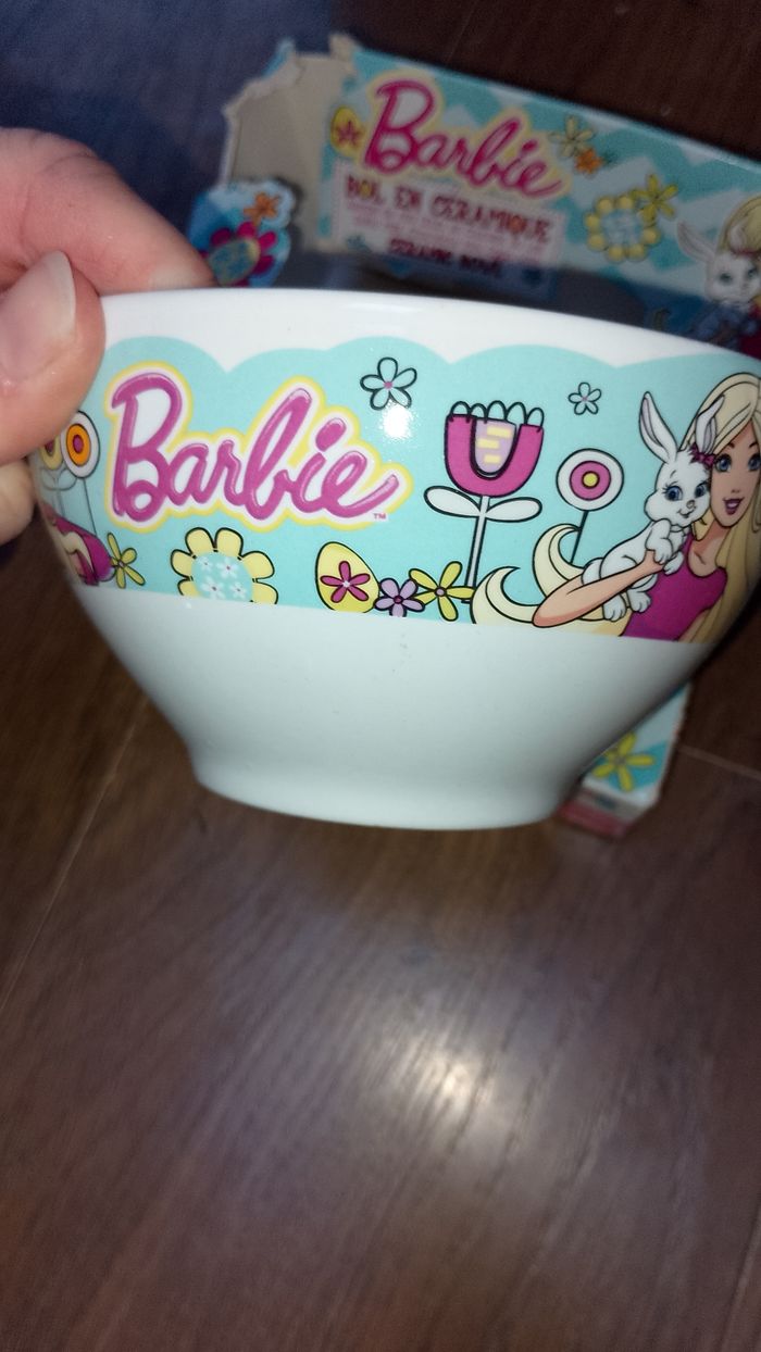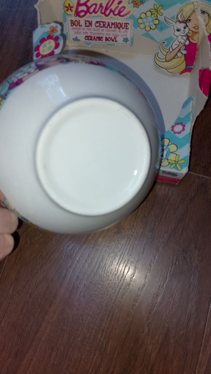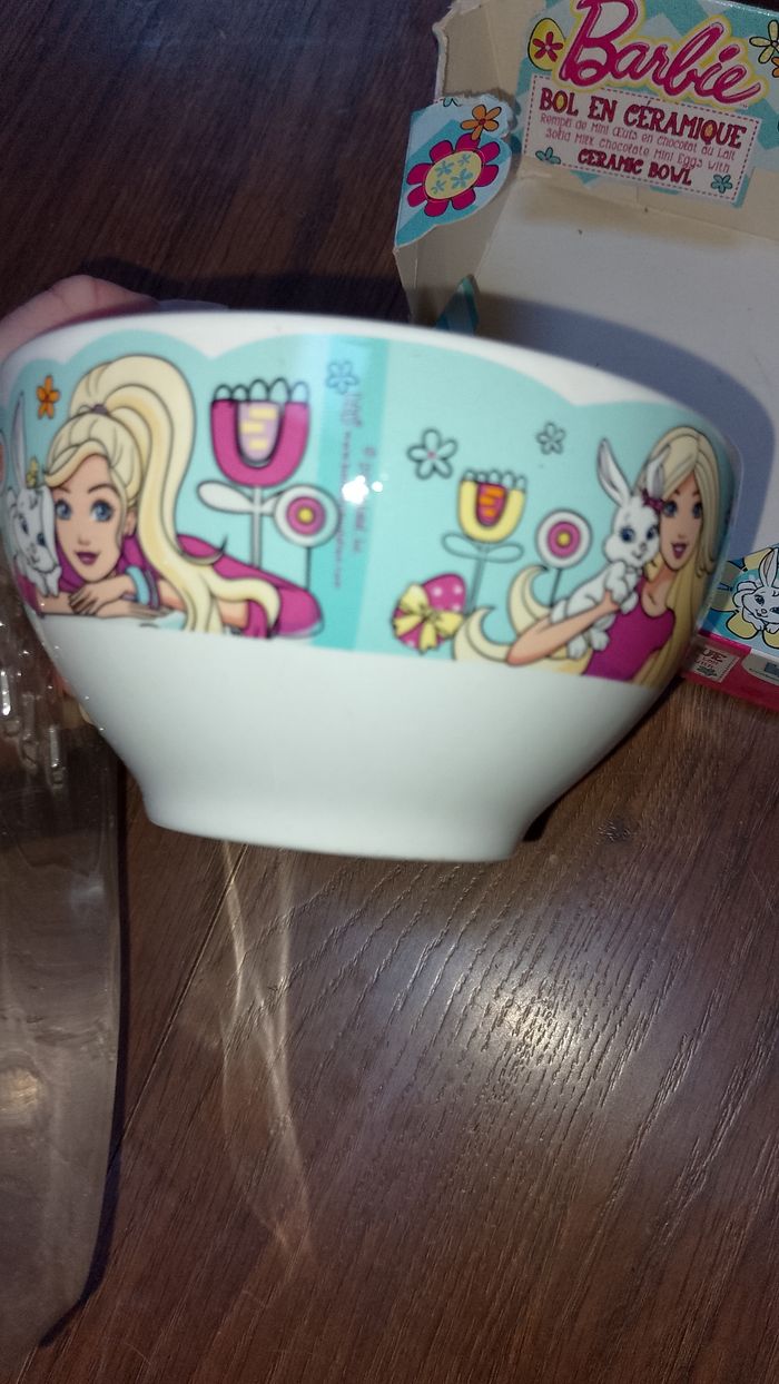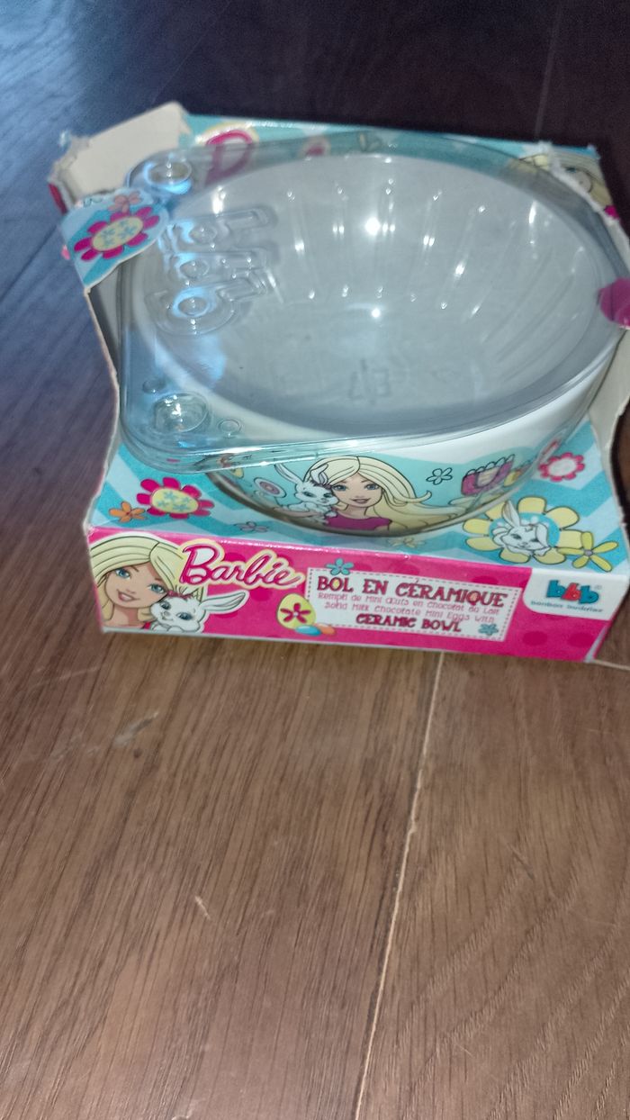 Bol BARBIE en céramique neuf Possible d'y remettre chocolat de Pâques où autres dans le bon plastique transparent du dessus.