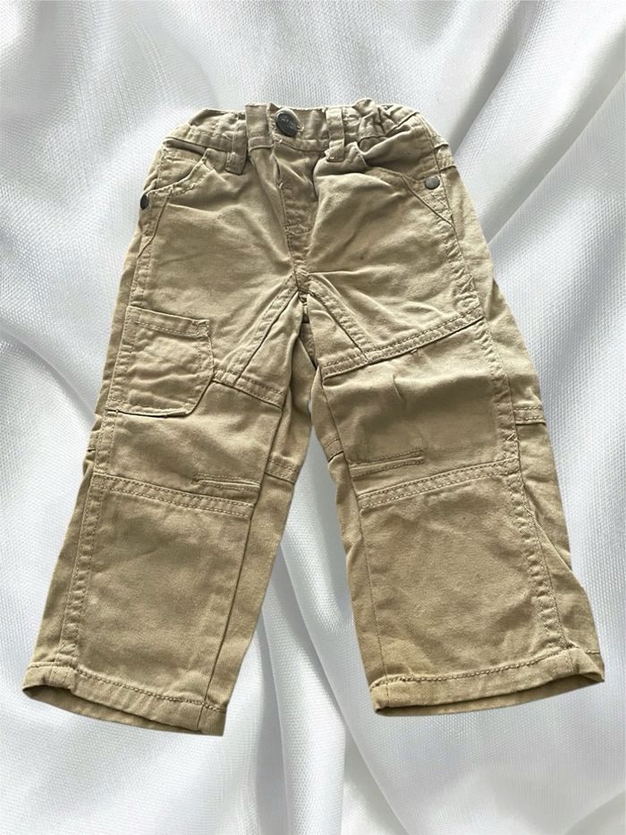 Pantalon kaki style cargo, avec poches latérales et taille élastiquée pour plus de confort 🌿