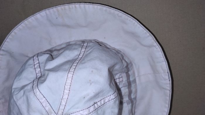 Chapeau en toile comporte plusieurs petits tâches par endroits