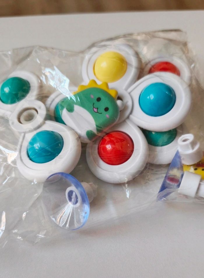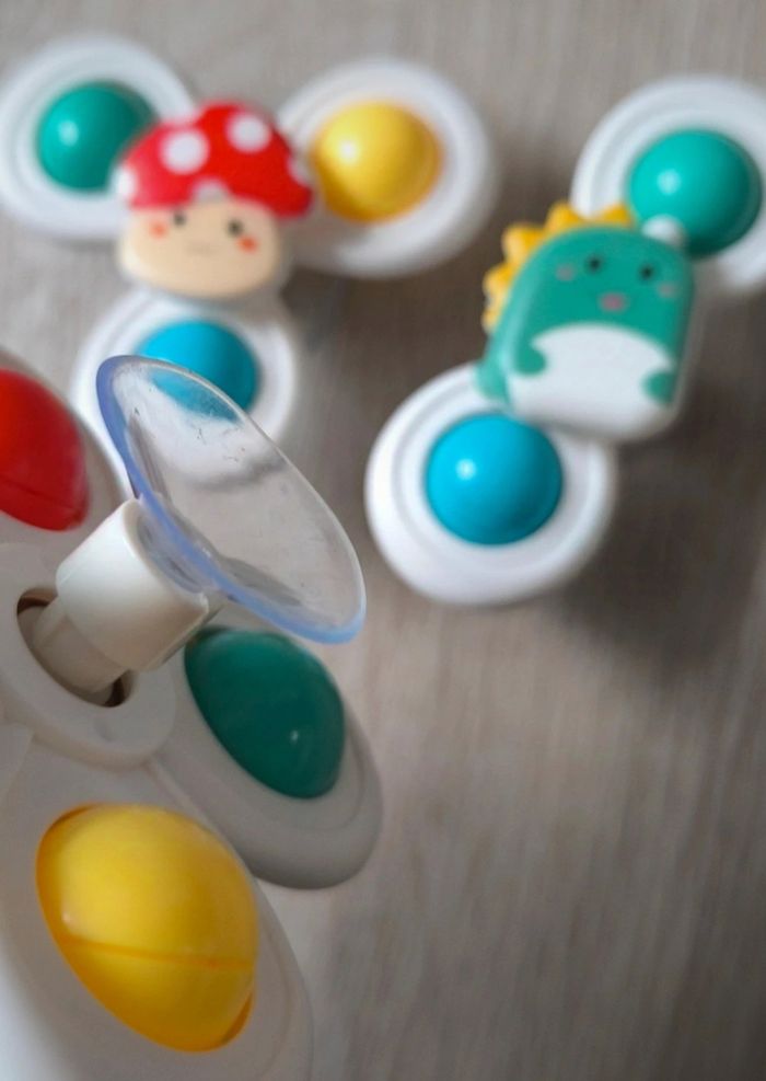 NEUF 💚 3 Spinners pour bébé 🌀 Jouet toupie avec ventouse 🦁🍄 lion, champignon, dinosaure - photo numéro 1