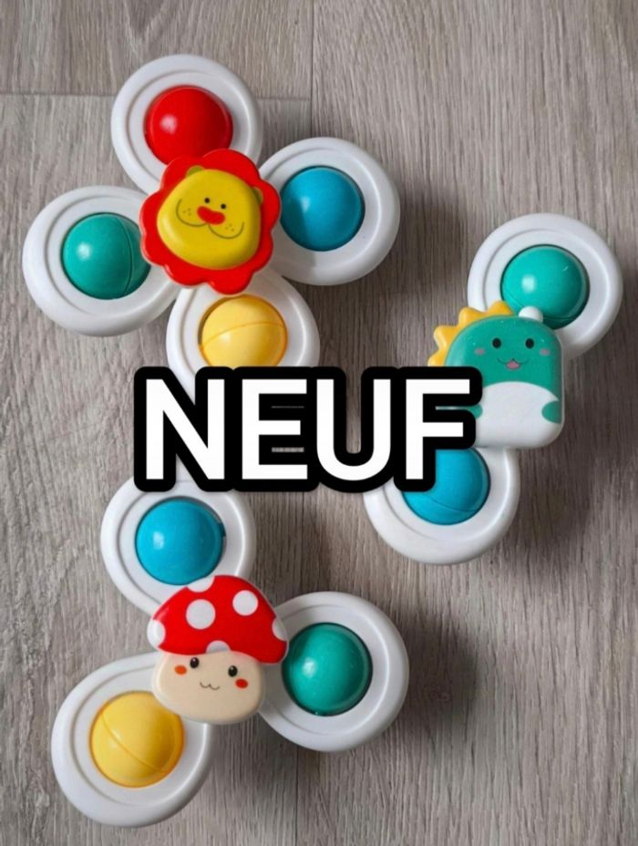 ⭐ Neuf , idéal pour offrir en cadeau 🎁 🎁🎄 Parfait pour offrir pour Noël 🎅🏻 ⭐ Jamais utilisé 🧡 Celui en photo déballé est celui de ma fille pour montrer le jouet 🎲 Lot de 3 jouets rotatifs pour bébé ✨ Jouet qui développe la motricité fine de bébé 🔹 Ce sont des petits jouets rigolos avec des animaux,ils se fixent sur la tablette de la chaise haute ou la paroi de la baignoire. 👉🏻 Un mouvement de bébé avec le doigt et les spinners tournent sur eux mêmes 🍄🦕🦁 3 adorables jouets à ventouse pour bébé: des 🩷 Formes mignonnes de lion , champignon et dinosaure. 🎨 Des couleurs vives et multicolores attirent facilement l'attention de bébé. 🌈 Les jouets d'apprentissage précoce conviennent à l'entraînement des sens de la vue, du toucher et de l'ouïe pour les bébés jusqu'à 18 mois. 👌🏻Les mouvements de préhension, d'absorption et de rotation du jeu aident à améliorer la coordination oeil-main de votre bébé et à développer sa concentration et sa patience. 🌀 Le jouet rotatif sensoriel pour enfants, développe également la reconnaissance des couleurs et les capacités de préhension et sensorielles