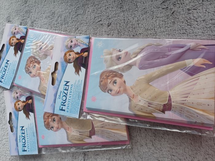 Je vends un lot de 18 cartes d’invitation Frozen sur le thème de La Reine des Neiges, parfait pour un anniversaire d’enfant ou une fête à thème Disney.