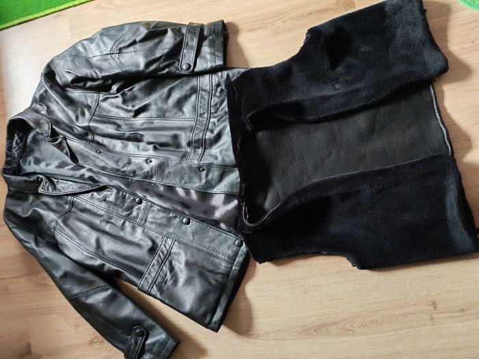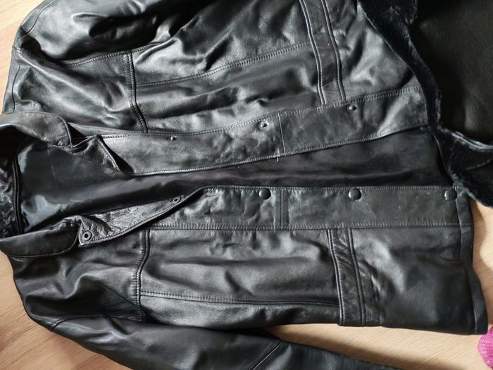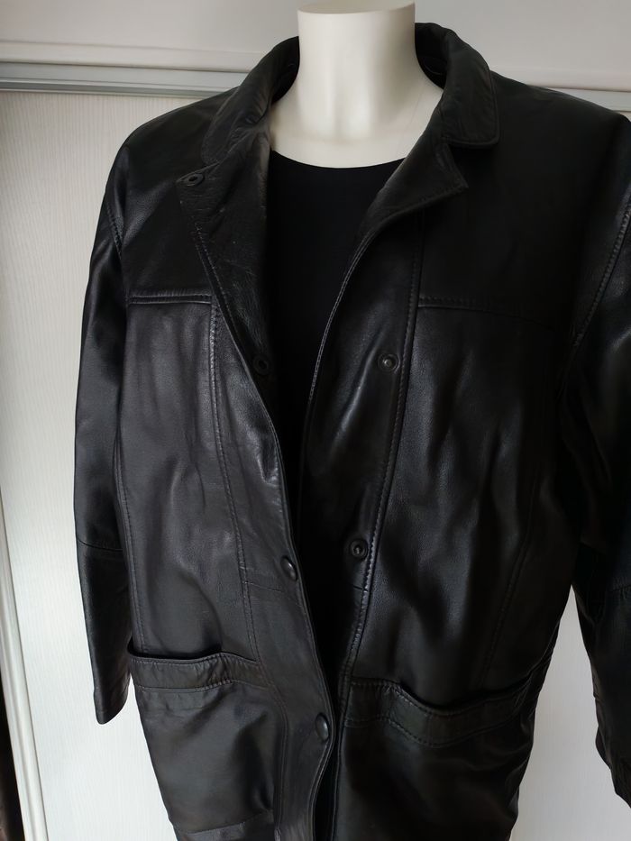 Veste pour femme en cuir de mouton vintage des années 1970/1980, en très bon état. Veste vintage en très bon état général, petite marque sur la poche et la manche avec la doubure amovible chaude, se ferme à boutons pression portant le nom Kuang Huel, 2 poches devant, taille vintage 46/48 (voir les mesures ci-dessous pour comparer avec votre taille), composition : dessus cuir mouton pleine fleur pigmentée, doublure 100% viscose, porte le N°369, nettoyage par un spécialiste uniquement. Mesures : Longueur veste : 77,5 cm Largeur dos entre les épaules : 50 cm Largeur dos entre les aisselles : 61 cm Longueur manche depuis l'aisselle : 41 cm Longueur manche depuis l'épaule : 59 cm Largeur manche : 27 cm Largeur poignet : 14 cm Largeur taille : 64 cm Poids : 1,5kg