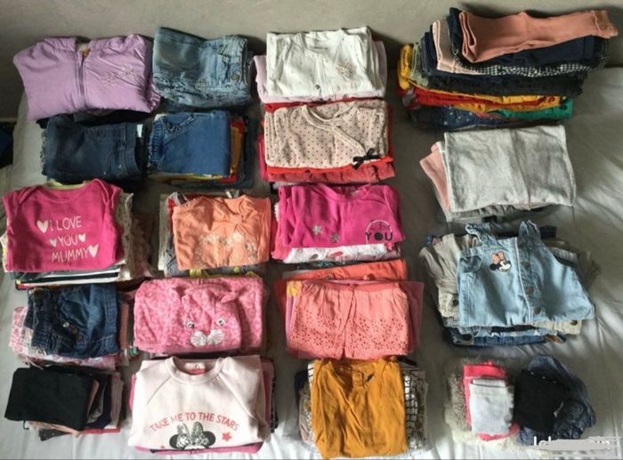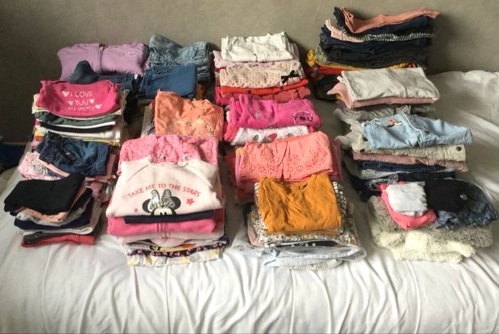 Environ 200 vêtements pour bébé fille en 6 mois pour toutes les saisons… je n’ai bien sûre pas tout mis (car limiter à 10 photos) La grande majorité des vêtements est en très bon état, seuls quelques vêtements sont craquelés aux niveaux des dessins, couleurs un peu moins vives ou avec quelques minies tâches mais très peu visibles et qui reste en bon état (photo sur demande) N’hésiter pas si vous avez des questions.. Diverses marques comme Gemo, Ikks, La Halle, H&M, Kiabi, Tex également etc..