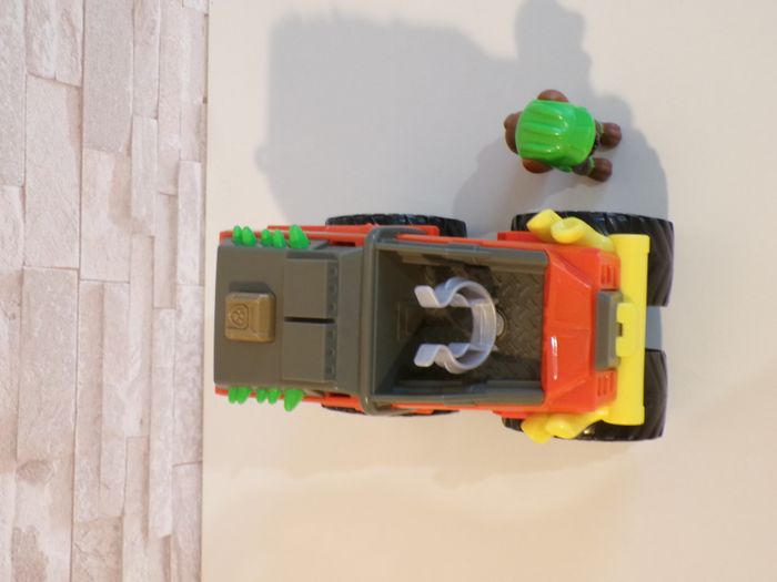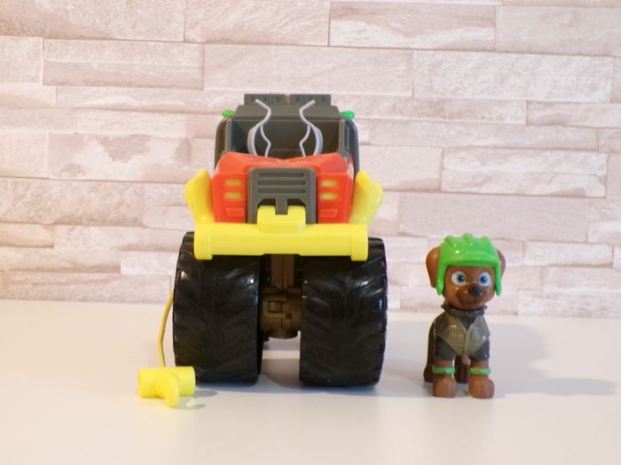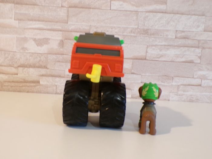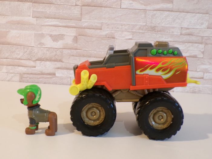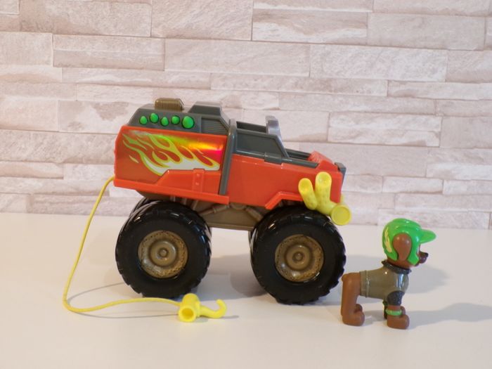 Camion Rescue Wheels - Boomer - Paw Patrol - Pat Patrouille, en très bon état. Le mécanisme du grappin fonctionne parfaitement. La figurine est en très bon état, quelques traces aux pattes.