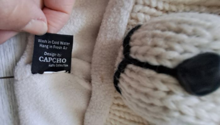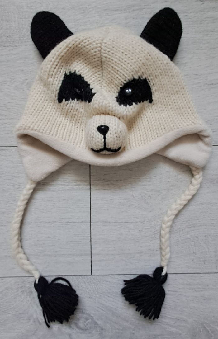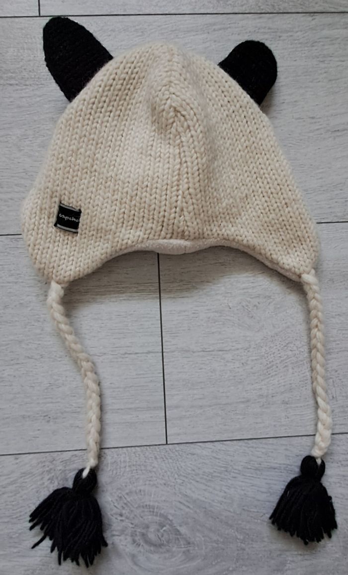 * Le premier bonnet péruvien tête de panda noir et blanc en laine fait main de la marque Capcho.