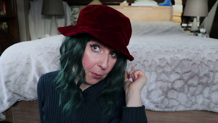 Chapeau bordeaux en velours vintage