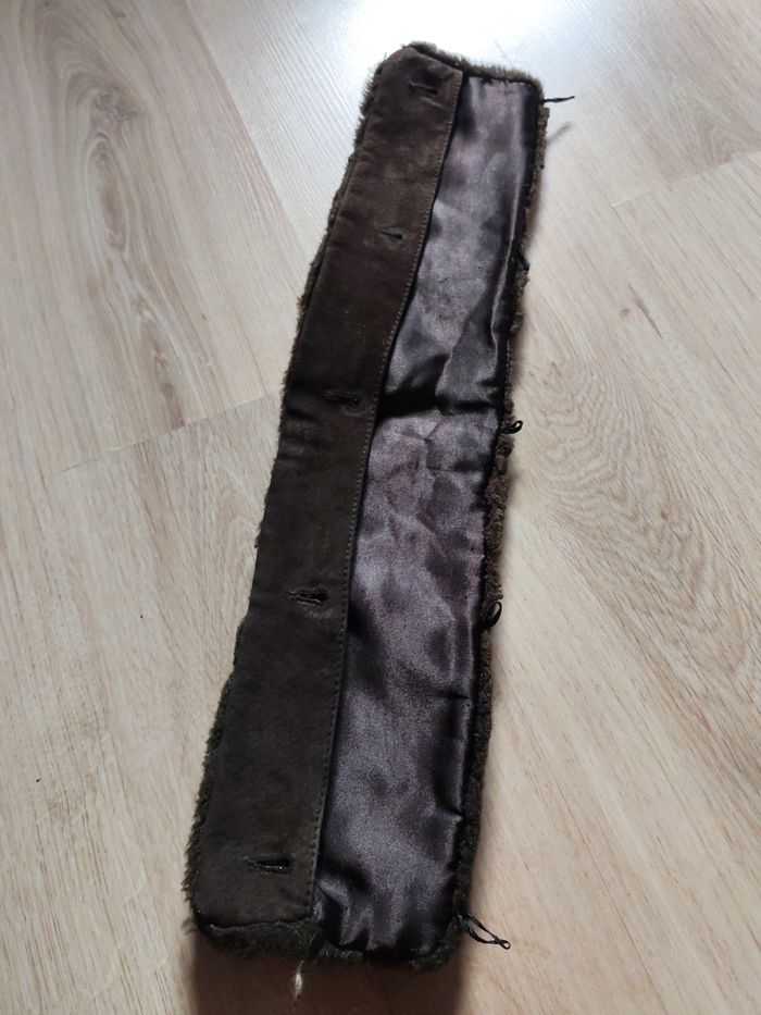Col marron en fausse fourrure à attacher au manteau, en bon état général. Il a 5 boucles en élastique (étirées) et 5 trous à boutons, longueur de col 52 cm, largeur 12,5 cm, espace entre les trous à boutons 11 cm, poids 83g3. Je pense que c'est plutot pour manteau enant ou adulte, mais ne fait pas le tour (tour incomplet) du cou adulte.