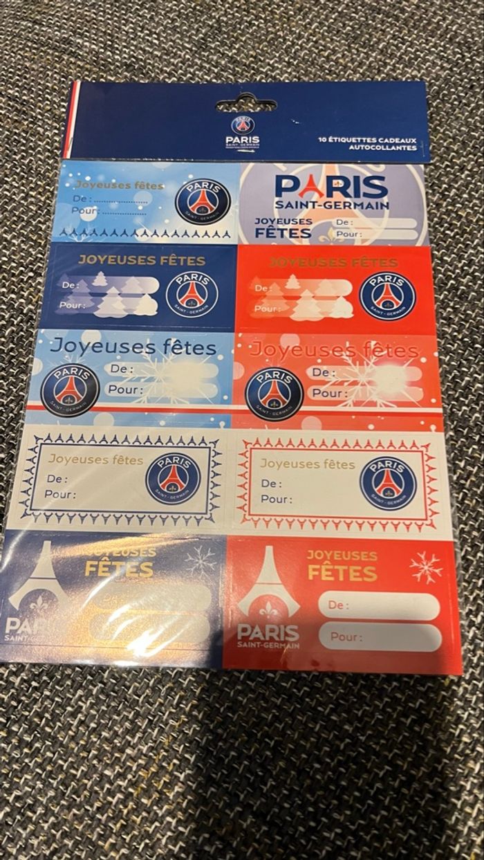 Un lot de 10 Étiquettes cadeau pour Noël autocollante, Paris Saint-Germain