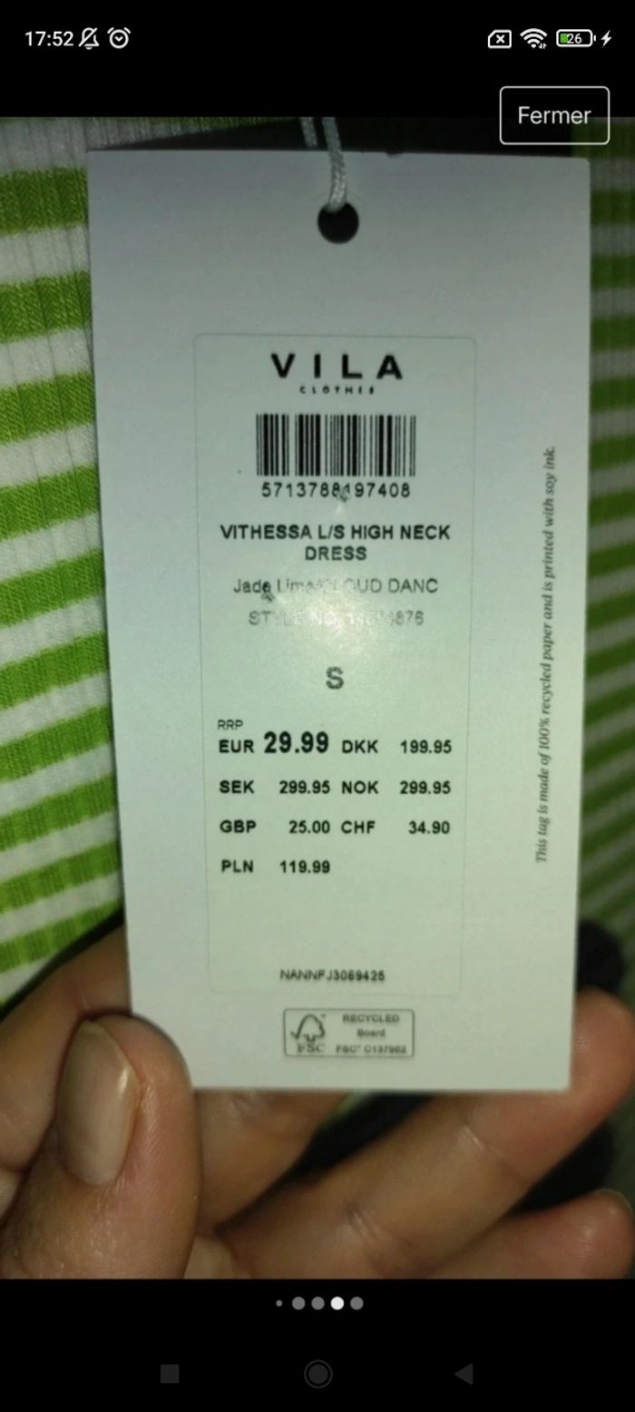 Magnifique robe neuf Vila Taille S Avec étiquette Valeur 29.99 Largeur aisselles a aisselles 44cm Longueur 99cm F18