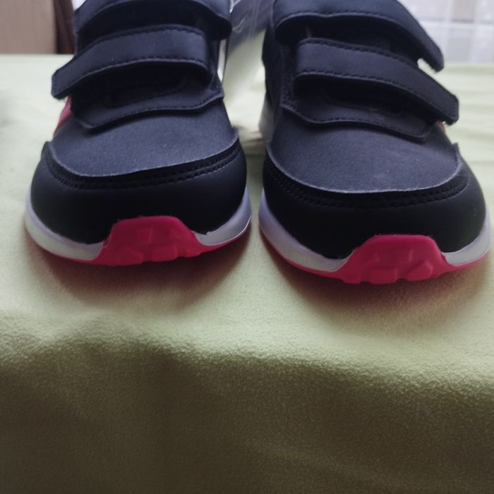 Basket à scratch Adidas pour fille pointure 30, Noir, 3 bandes semelles et logo de couleur fuchsia. Neuf jamais porté.