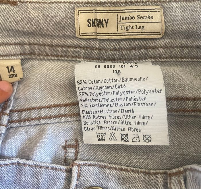 Il est noté sur l’étiquette taille 14 ans mais correspond à du 36,a signaler une petite trace sur un genoux sinon en bel état.