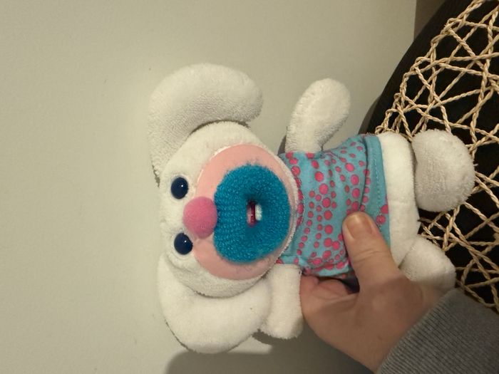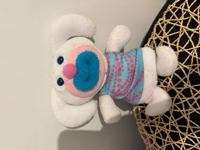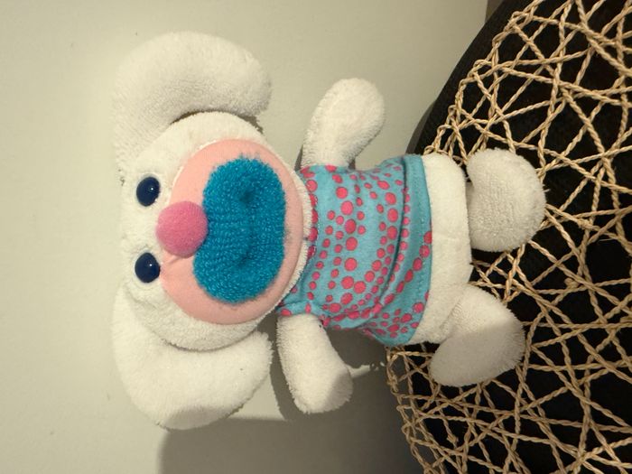 Peluche chantante Fisher Price Sing a Ma Jig blanche et turquoise, édition limitée 2010