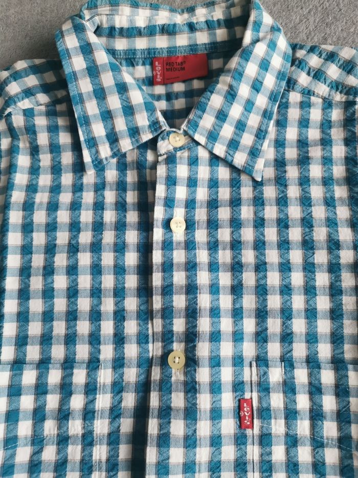 Chemise homme Levi's medium à carreaux turquoise /blanc, plus d'étiquette, bon état.