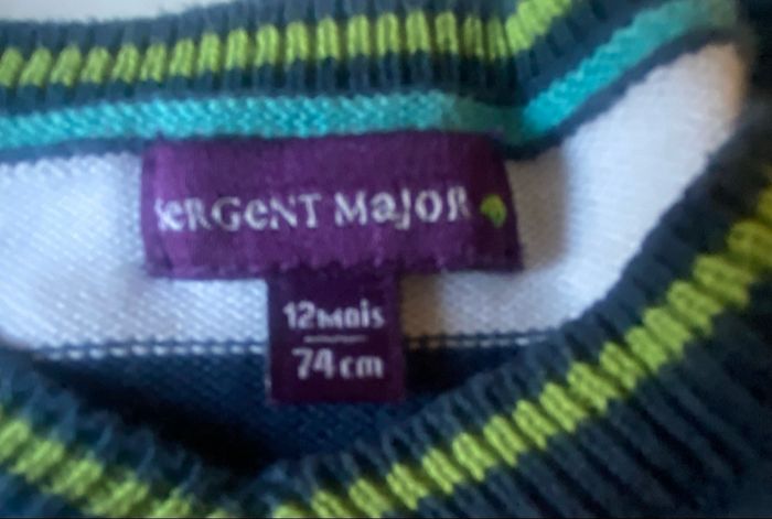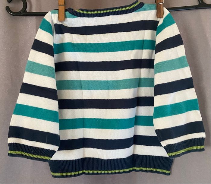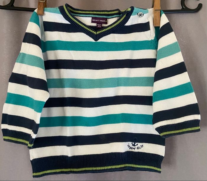 Pull rayé »Sergent Major »blanc et multicolore,taille 12 mois en très bel état.