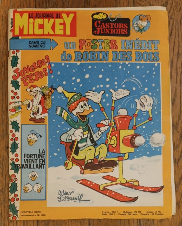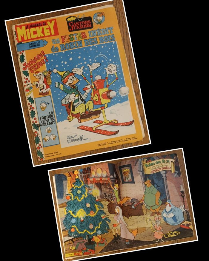 Ancien magazine Journal de Mickey N°1176 Année 1974 Avec poster Robin des Bois "joyeux Noël" ⚠️ Magazine abîmé Traces d'usure : Le magazine est gondolé sur le bas Tranche usée au niveau des agrafes Pages cornées Mais ne gène en rien pour la lecture Cf photos De nombreux anciens magazines et articles vintage disponibles, N'hésitez pas à regarder mes autres annonces