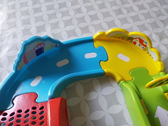 Coloré, sonore et plein de surprises, il initie les enfants aux bases du code de la route grâce à son feu tricolore interactif.