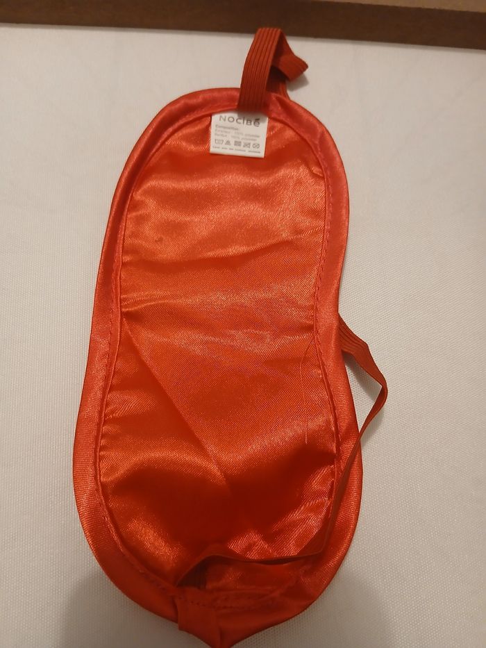 Masque rembourré rose fushia satiné à motifs, en polyester, 18/8 cm, neuf.