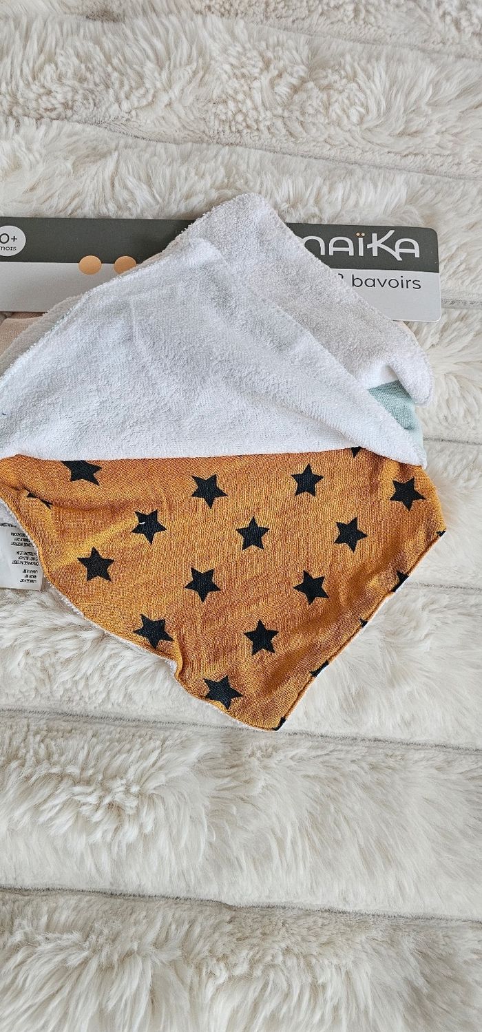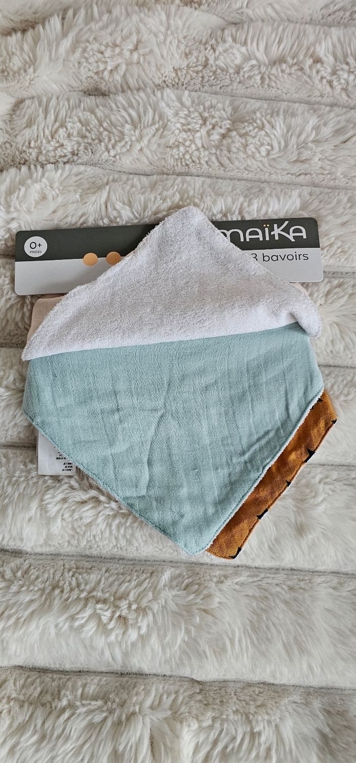 Lot de 3 bavoirs bandanas 100% coton Maïka Neufs