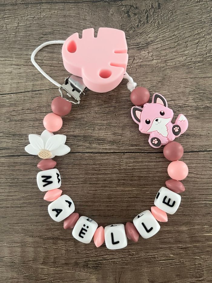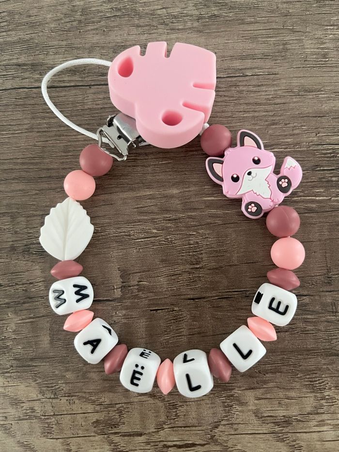 Attache tétine personnalisée Renard Rose