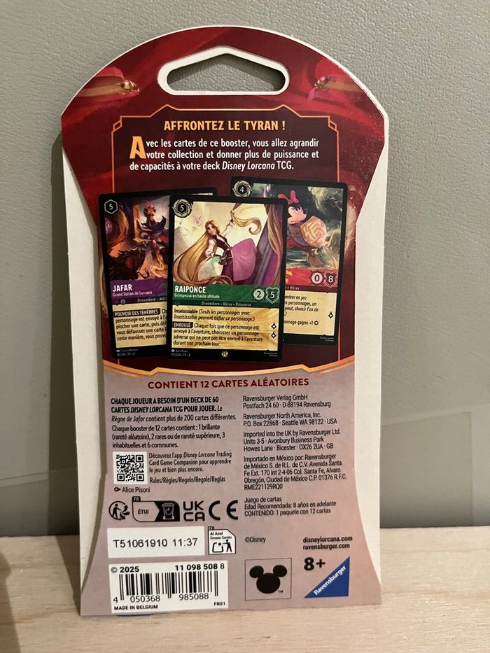 Vivez l'émotion d'ouvrir un booster scellé Disney Lorcana ! Personnalisez votre deck avec les 12 cartes d'un booster Disney Lorcana : Le Règne de Jafar.