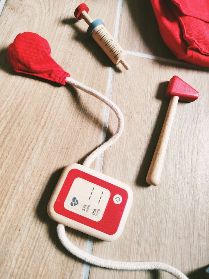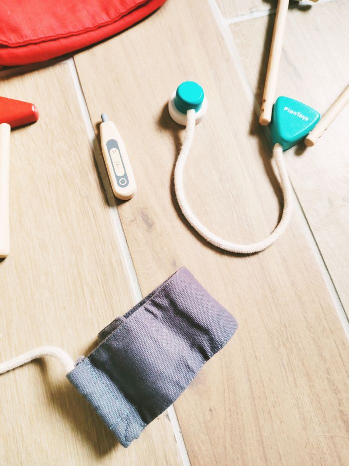 ✨ Une fausse seringue, un stéthoscope, un petit marteau, un thermomètre et tensiomètre qui fait pouet pouet