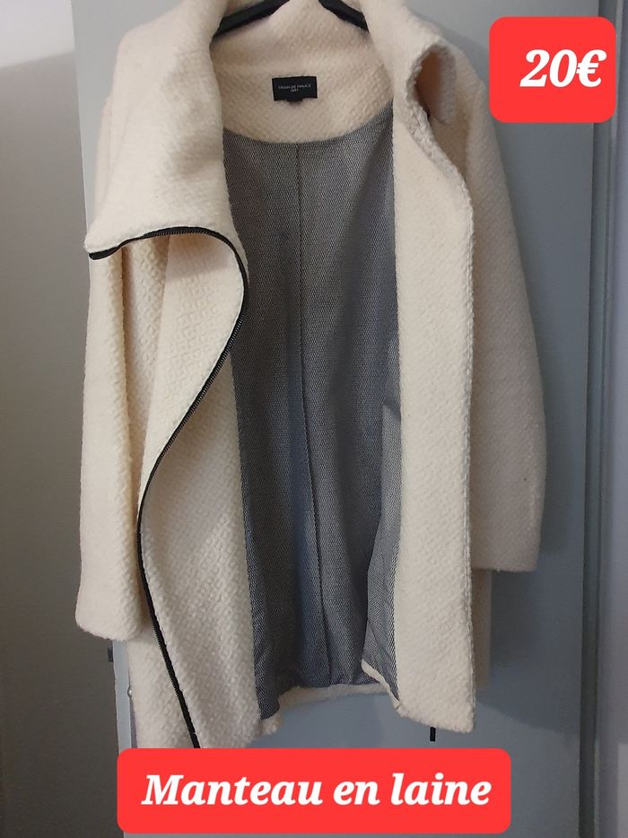 Bonjour, je vend un manteau blanc en laine, tiens très chaud. Et d autres affaires pour femmes grande tailles