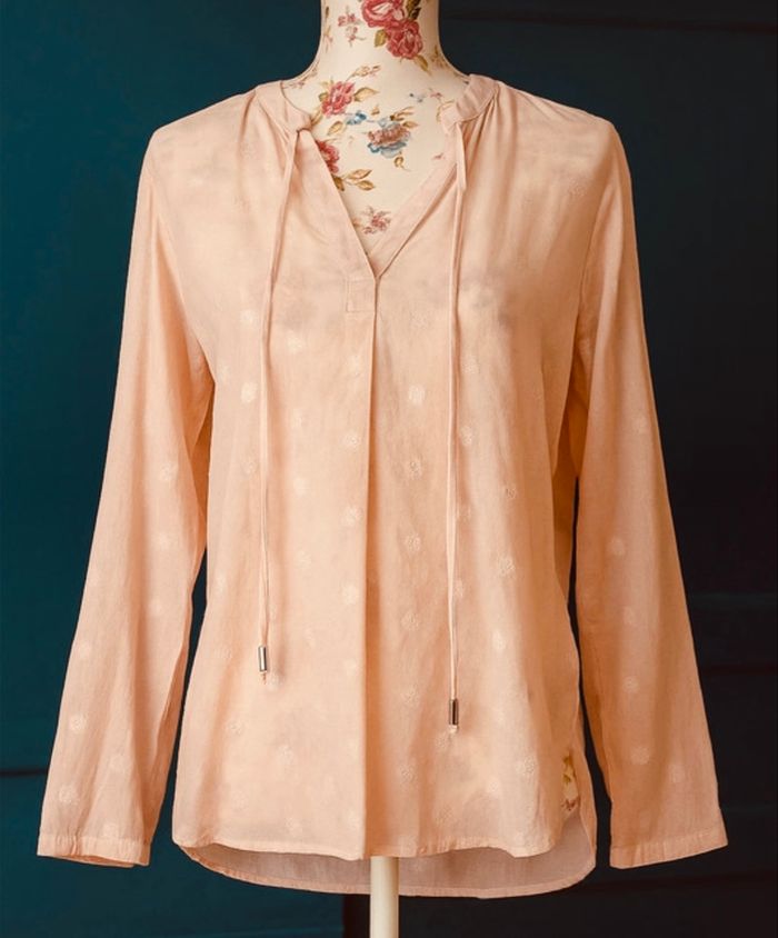 superbe blouse rose dégradée, très féminine et ultra lumineuse grâce à ses pastilles argentées en relief ✨