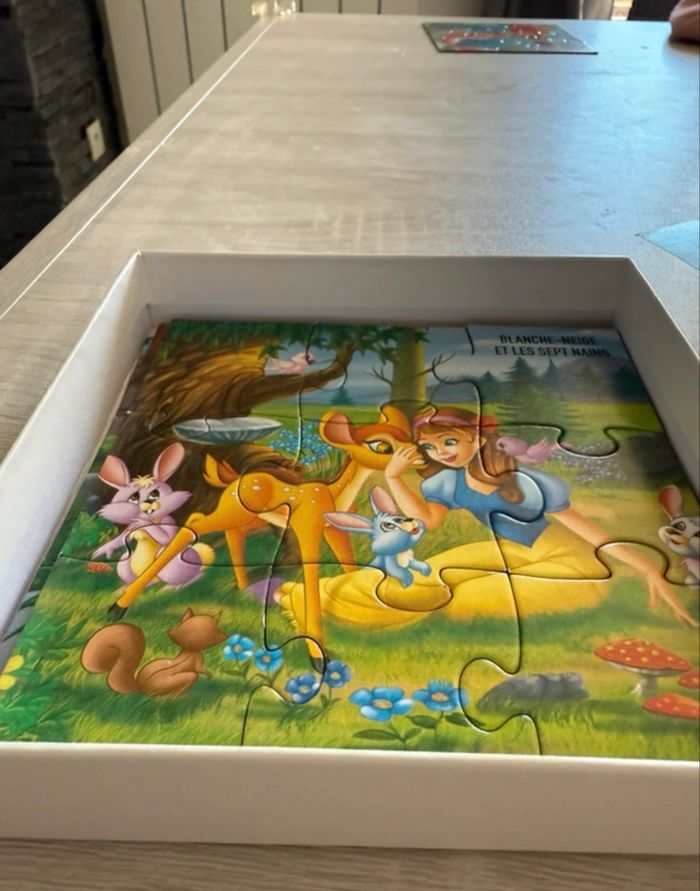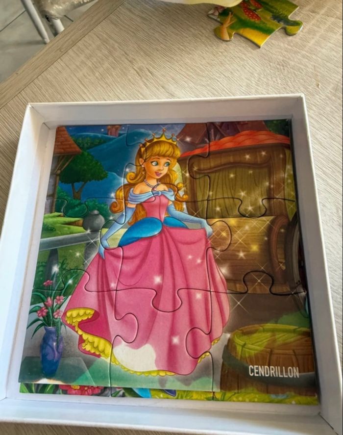 4 puzzles de 9 pièces, princesses de Disney, cendrillon, la petite sirène, blanche neige et la belle au bois dormant, il ne manque aucunes pièces, neuf sans étiquette