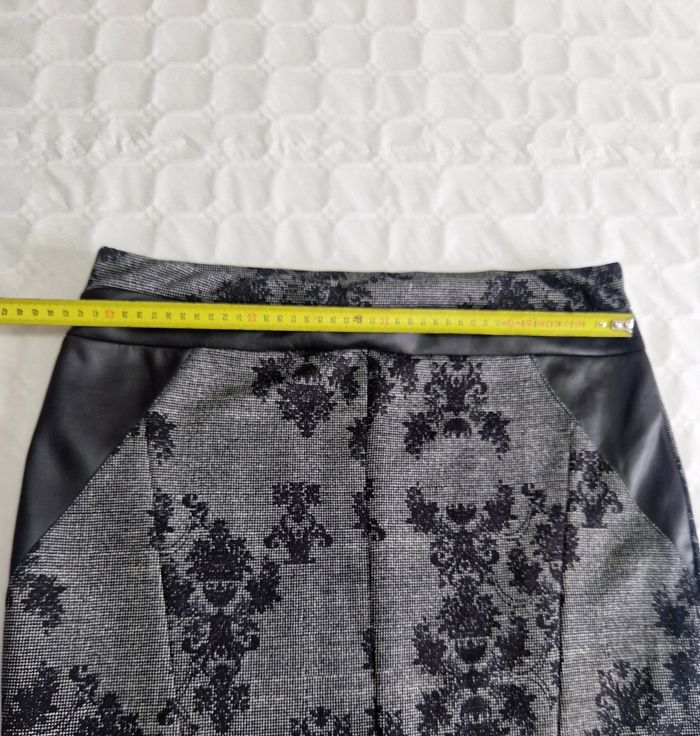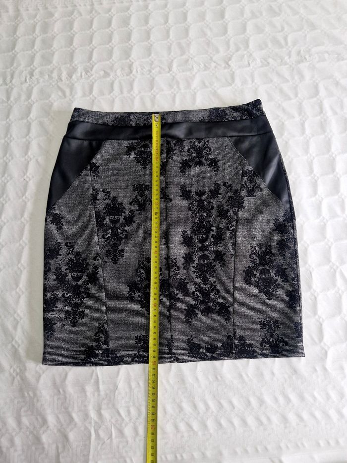 Jupe femme  , grise et noire  , tissu et simili cuir  , Jus d'orange  , taille L , rock / gothique - photo numéro 5