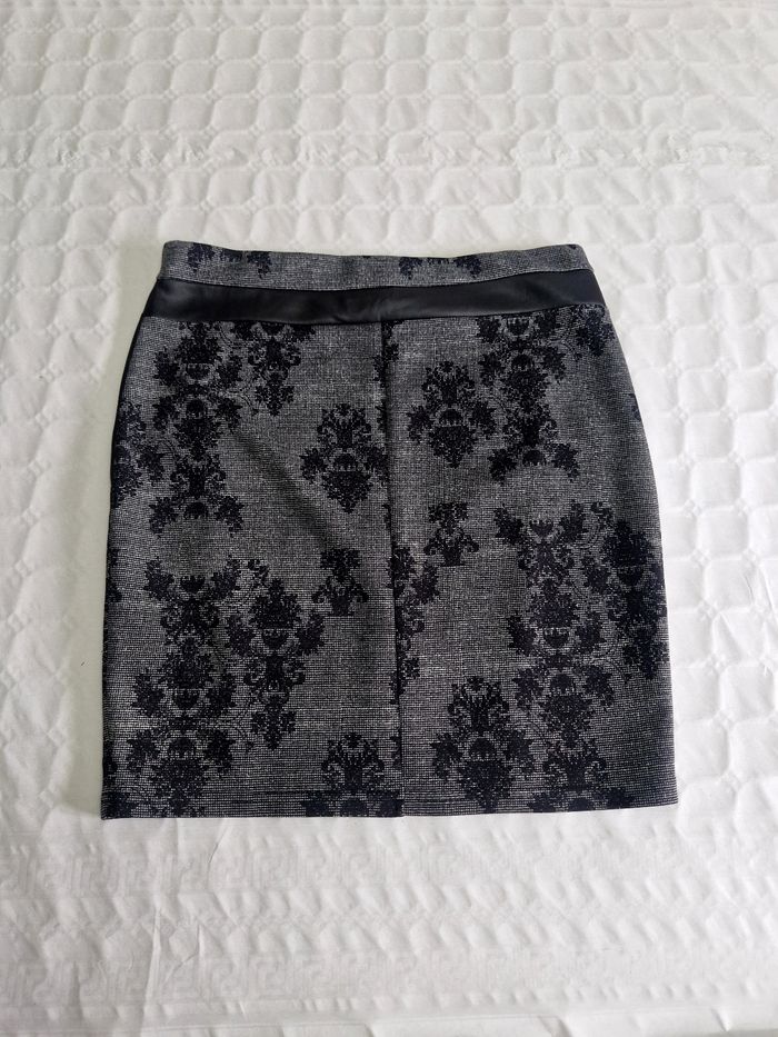 Jupe femme  , grise et noire  , tissu et simili cuir  , Jus d'orange  , taille L , rock / gothique - photo numéro 1