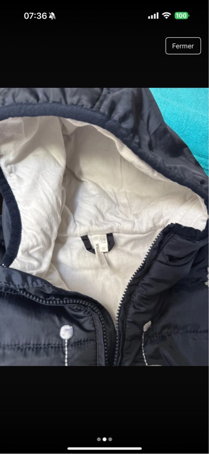 Veste/pull à capuche, blanc et bleu marine, en très bon état, marque orchestra, taille 12 mois