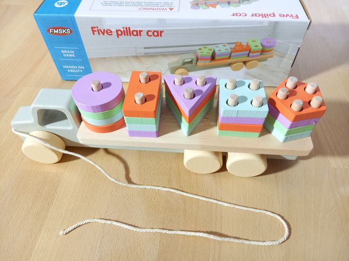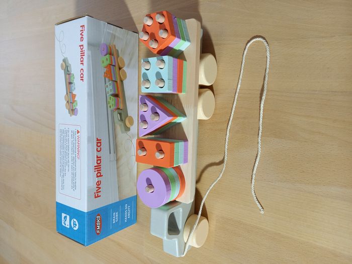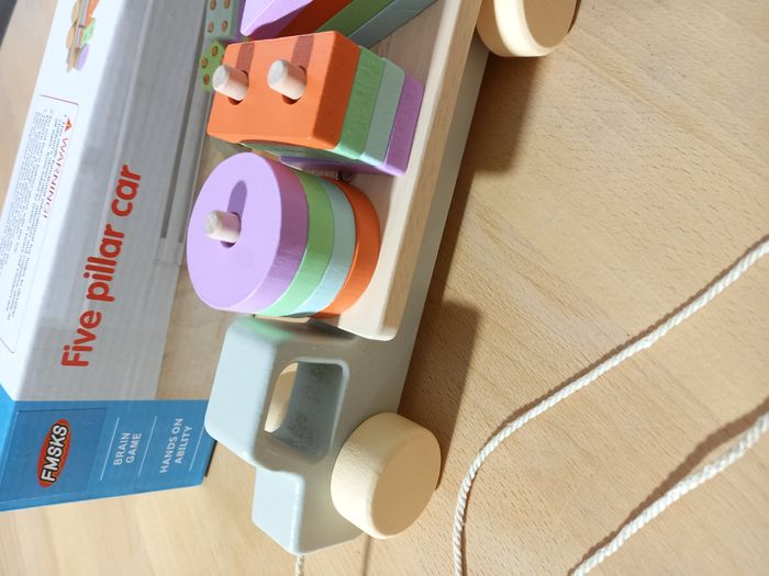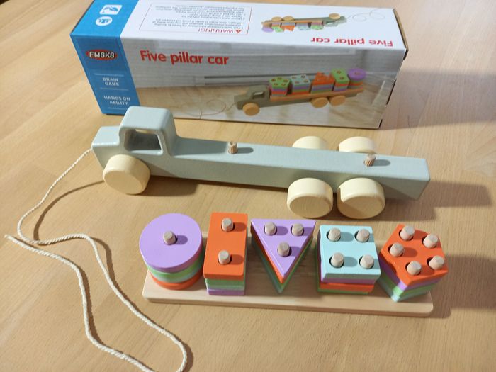 Joli train des formes, jeu d'éveil mixte et de motricité fine, d'inspiration Montessori 🧩 Autres jouets en bois ou d'inspiration Montessori disponibles! Jeu 100% jamais utilisé 🏷 Recommandé à partir de 3 ans 📏​ Dimensions: 30 x 6 x 9.5 cm (H) 🔍Description: Coloris pastel: bleu, vert, violet, orange. Formes: carré, triangle, rectangle, rond et pentagone 🟥🔼 🔵 Pièces recouvertes de peinture à l'eau 🎨 En bois 🌳 Pièces faciles à manipuler 🃏 Jeu inspiration Montessori 🧵 Allez regarder mon dressing, nombreux jeux de société et jouets pour enfants disponibles ou en cours de publication. Abonnez-vous :)