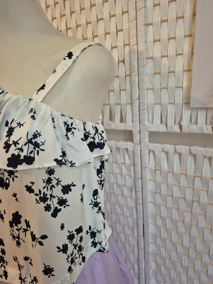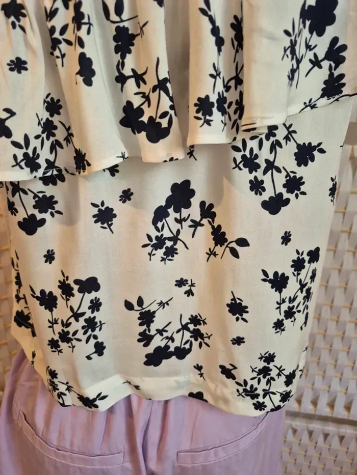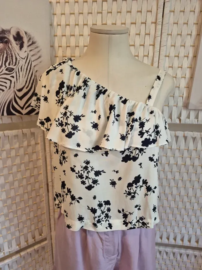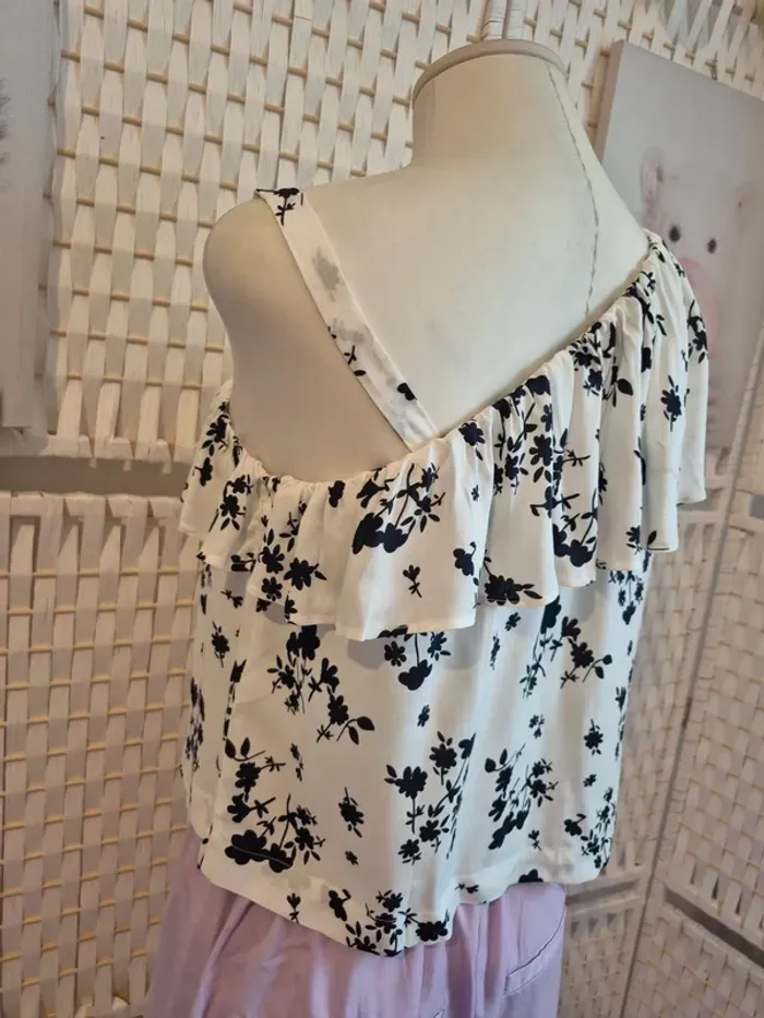 #benetton #topfemme #fleuri #blanc #asymetrique #ete #viscose #tailleS #vintage #boheme #romantique #volant #imprime #mode #vetementsfemme #shopping #bonplan #occasion #etatparfait #envoisoigne