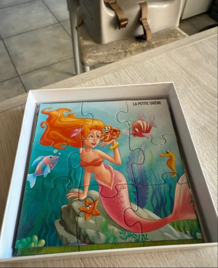 4 puzzles 9 pièces chacun de Disney princesses, cendrillon, la petite sirène, blanche neige et la belle au bois dormant, il ne manque aucunes pièces, neuf sans étiquette