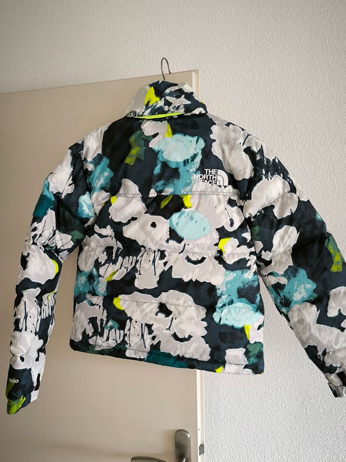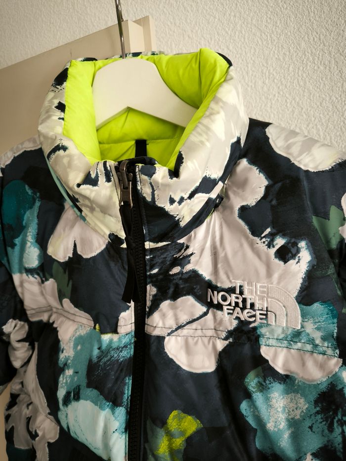 Capuche dans le col même motifs fleurs