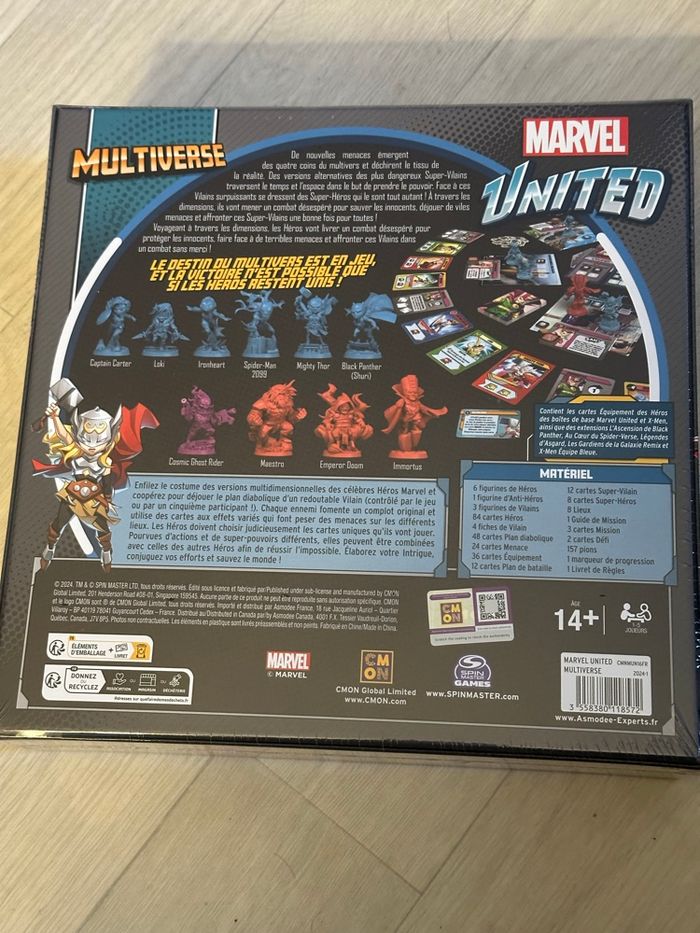 Dans l'extension Marvel United : Multiverse, constituez votre équipe de héros issus de toutes les réalités et unissez vos forces pour contrecarrer le plan des méchants les plus puissants de toutes les lignes temporelles. Avec votre équipement spécial à vos côtés, même le plus grand obstacle peut être renversé.prix 20 euros