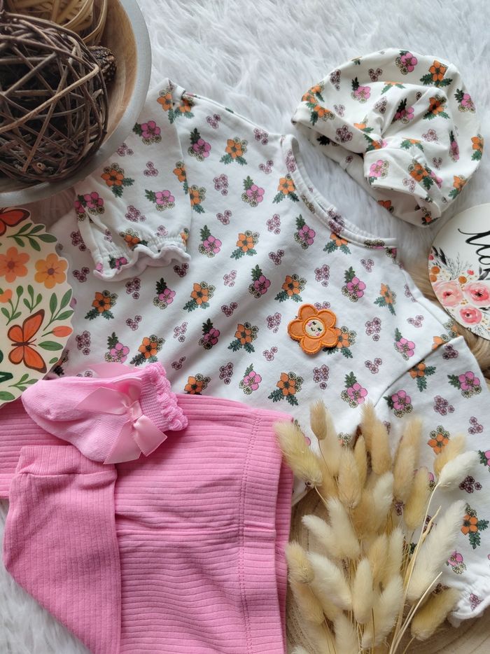 ✅ Neuf sans étiquette ✅ Ensemble magnifique complet 4 pièces collection "la mélodie des Cévennes" ✅ Pull fleuri+legging côtelé + turban bonnet fleuri ✅ Chaussettes neuves ✅ Printemps/été 🌸 N'hésitez pas à vous abonner à mon dressing, mise en ligne régulièrement 🌸