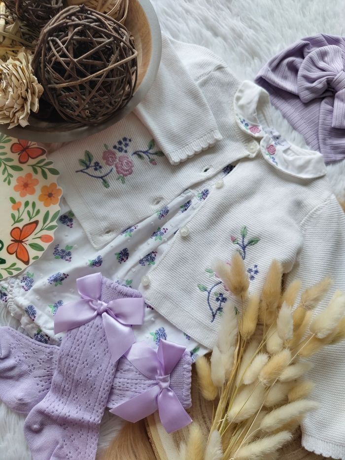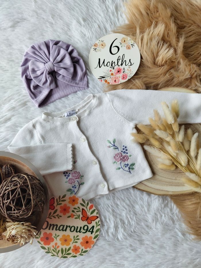✅ Gilet tricot broderie fleurie+ barboteuse fleurie+bodie col claudine broderie fleurie