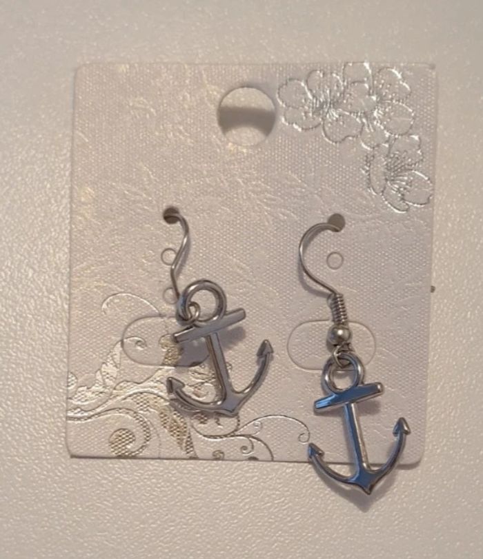 Je vends ces boucles d'oreilles neuves avec un motif ancre marine.