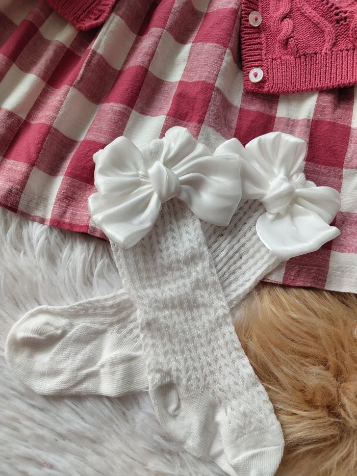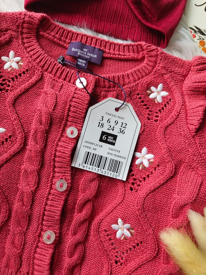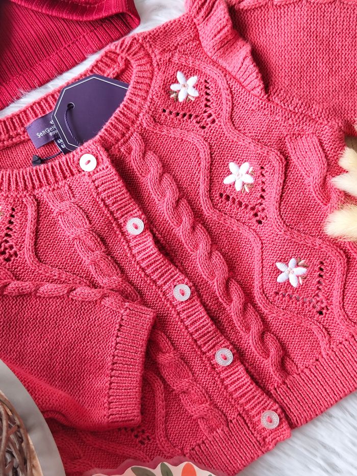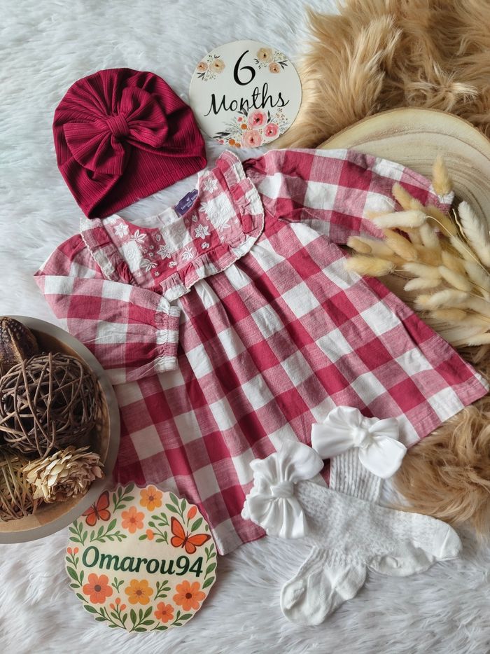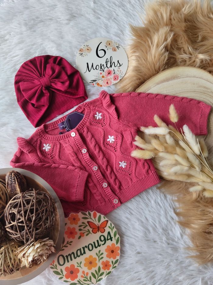 ✅ Gilet cardigan tricot broderie fleuri+ robe à carreaux blanc et rose à volants