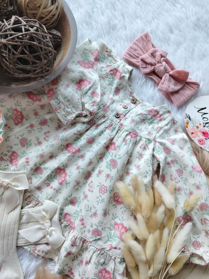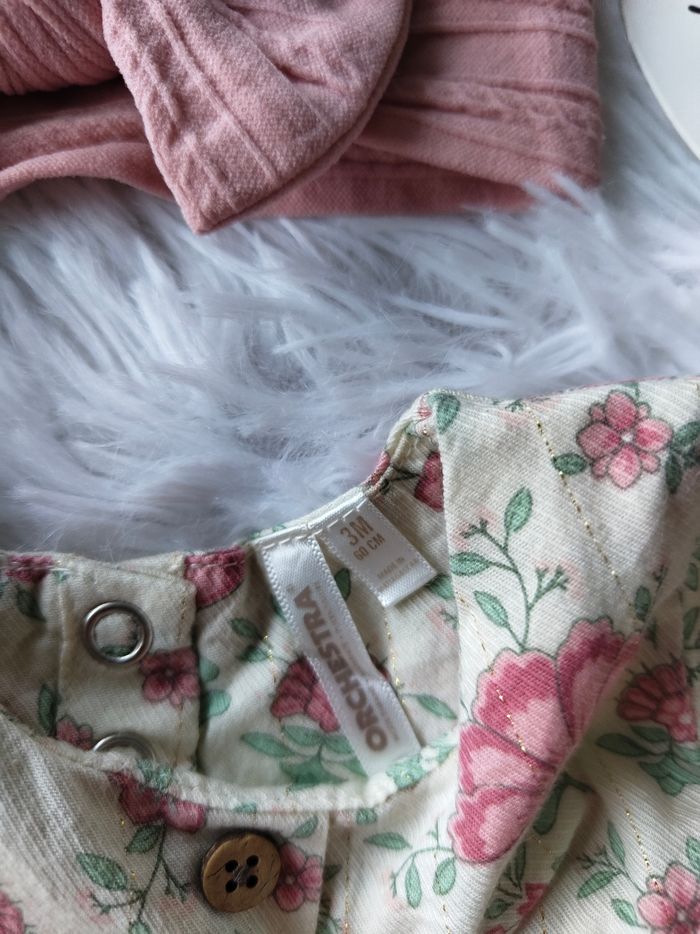 Robe fleurie manches longues et ses accessoires orchestra fille 3 mois 🎀
