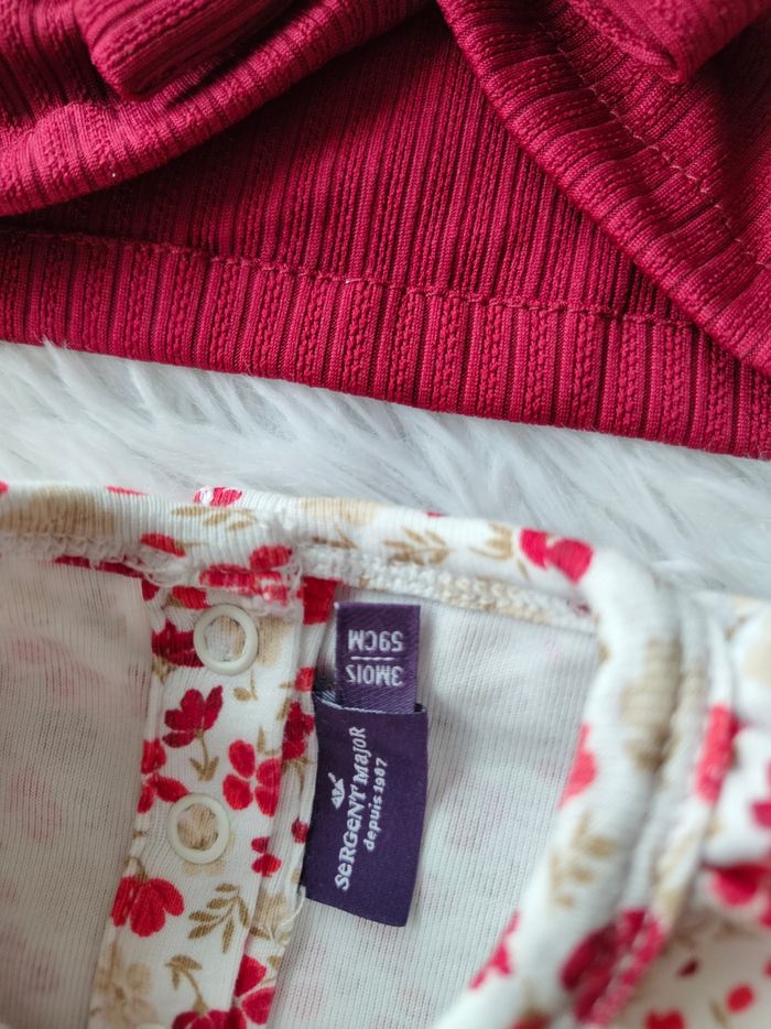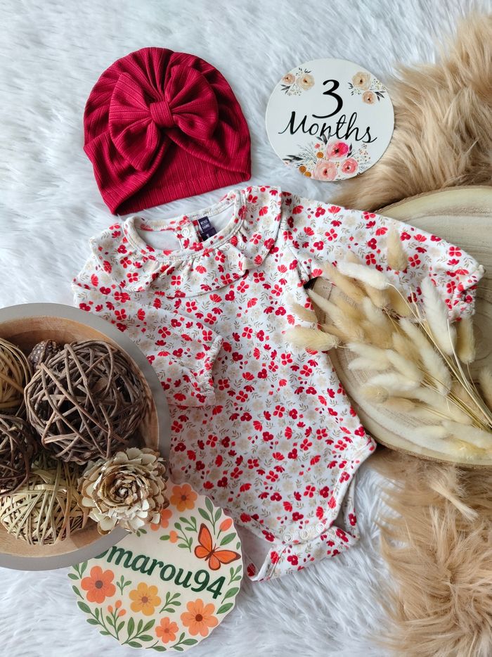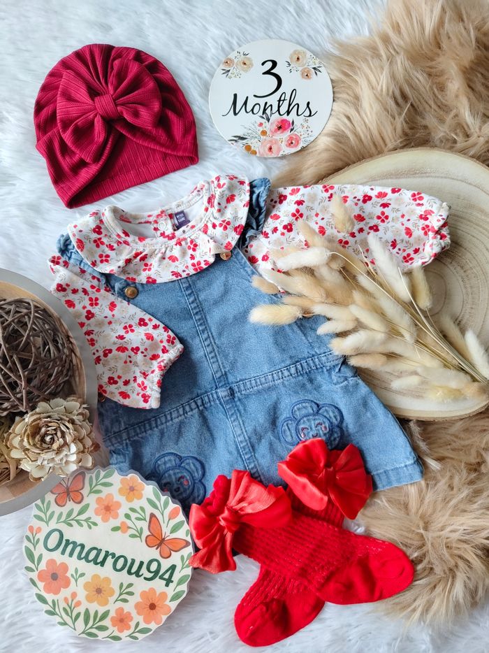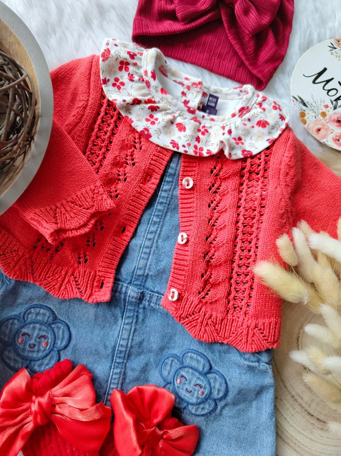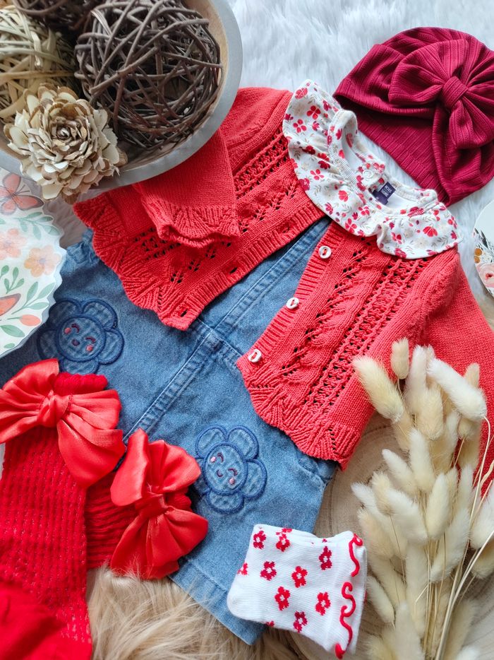 ✅ Gilet tricot boutons fleuri+ robe en jean broderie fleurie+ bodie manches longues fleuri col claudine+ chaussettes fleuries