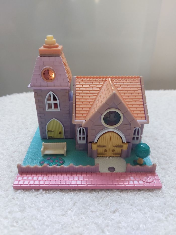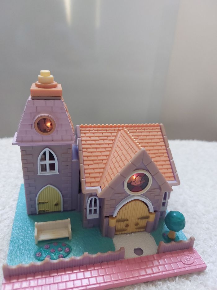 Polly Pocket Bluebird - église Lumières fonctionnelles mais vendu sans piles Couleurs fanées, une trace a l'arrière Sans figurine