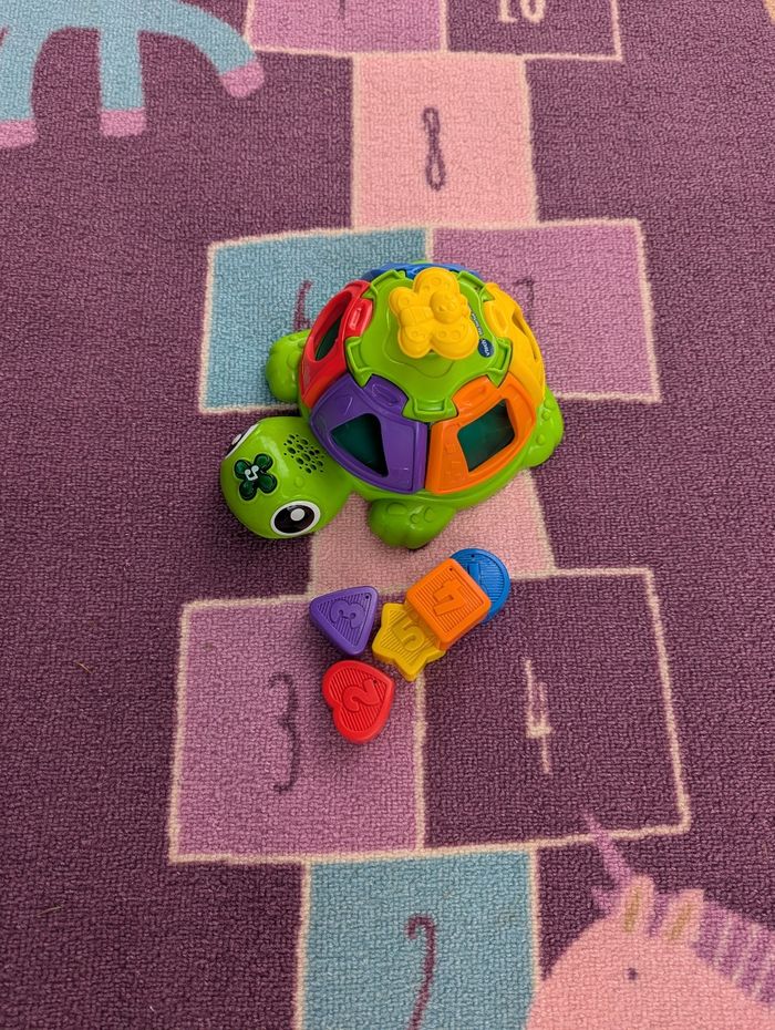 La carapace de la tortue est un trieur de forme, votre enfant peut insérer les blocs colorés correspondant. Ce jeu éducatif permet de découvrir les formes, les premiers chiffres et les couleurs tout en s'amusant. En appuyant sur le bouton Papillon, votre enfant assiste à un joli tourbillon qui libère tous les blocs pour s’amuser et apprendre encore et encore !